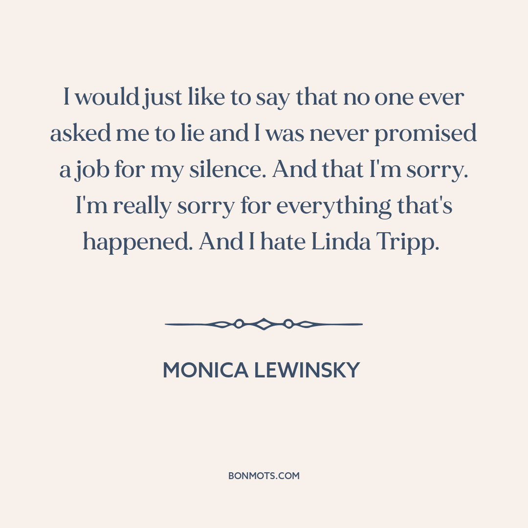 I would just like to say that no one ever asked me to lie and I was never promised a job for my silence. And that I'm sorry. I'm really sorry for everything that's happened. And I hate Linda Tripp.