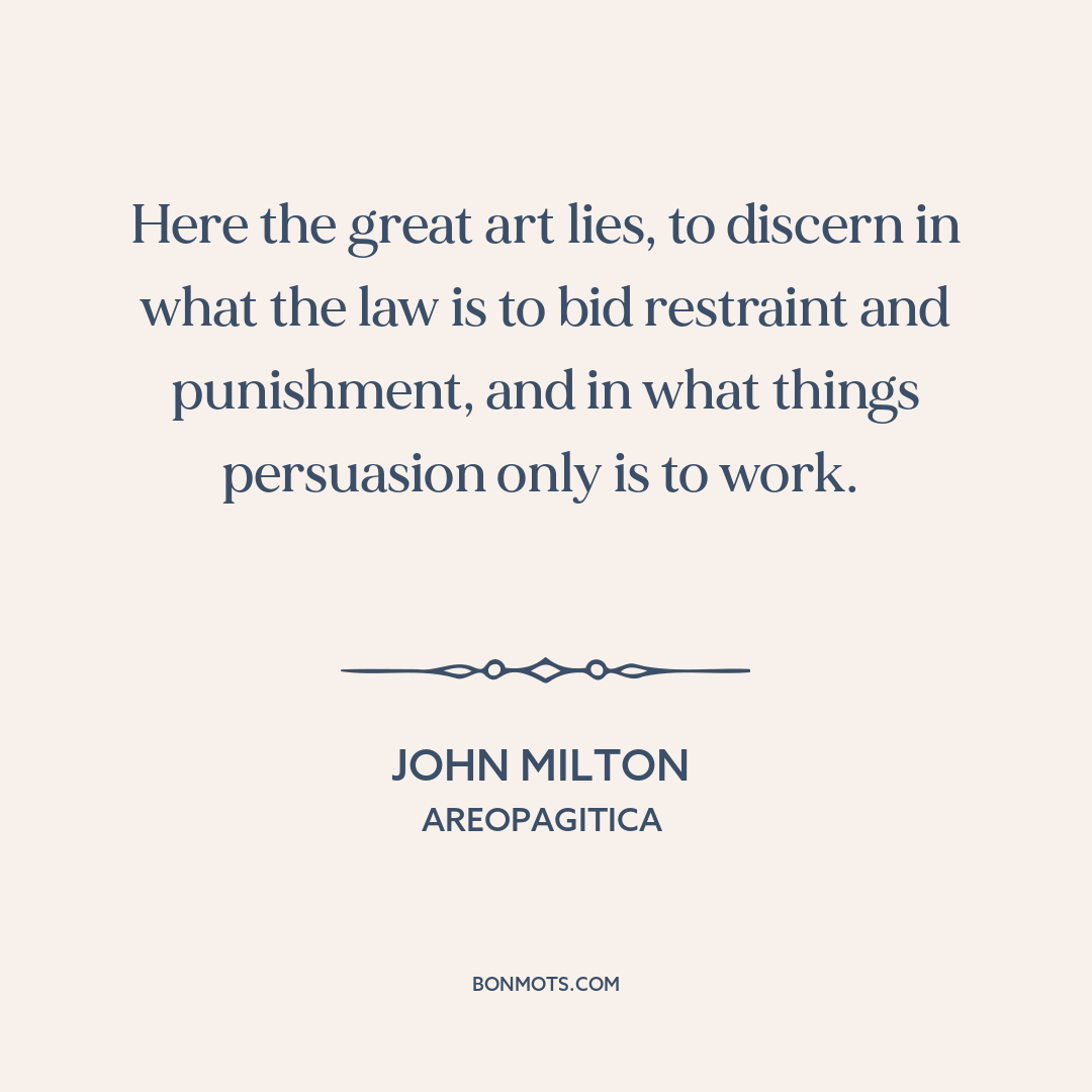 Here the great art lies, to discern in what the law is to bid restraint and punishment, and in what things persuasion only is to work.