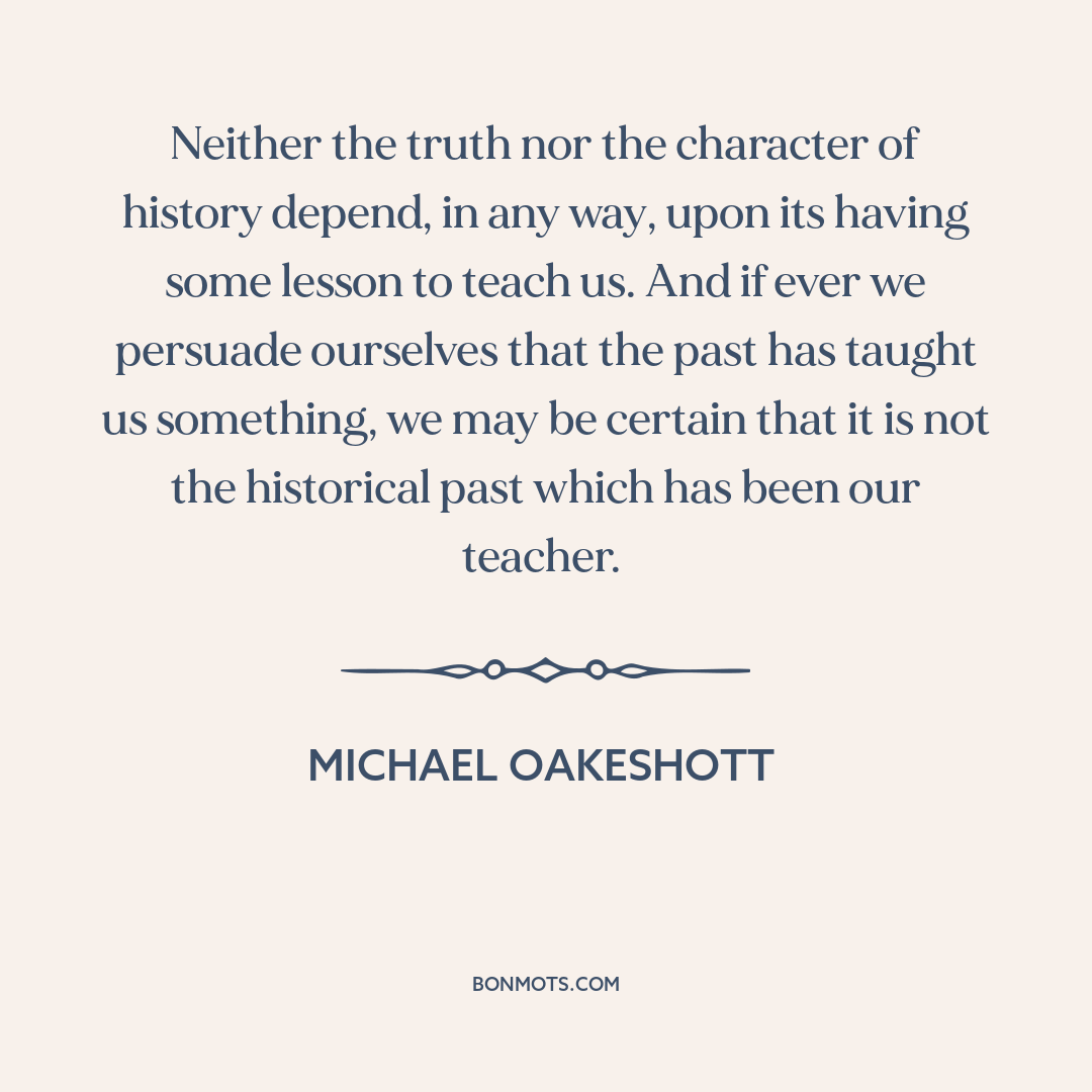 Neither the truth nor the character of history depend, in any way, upon its having some lesson to teach us. And if ever we persuade ourselves that the past has taught us something, we may be certain that it is not the historical past which has been our teacher.