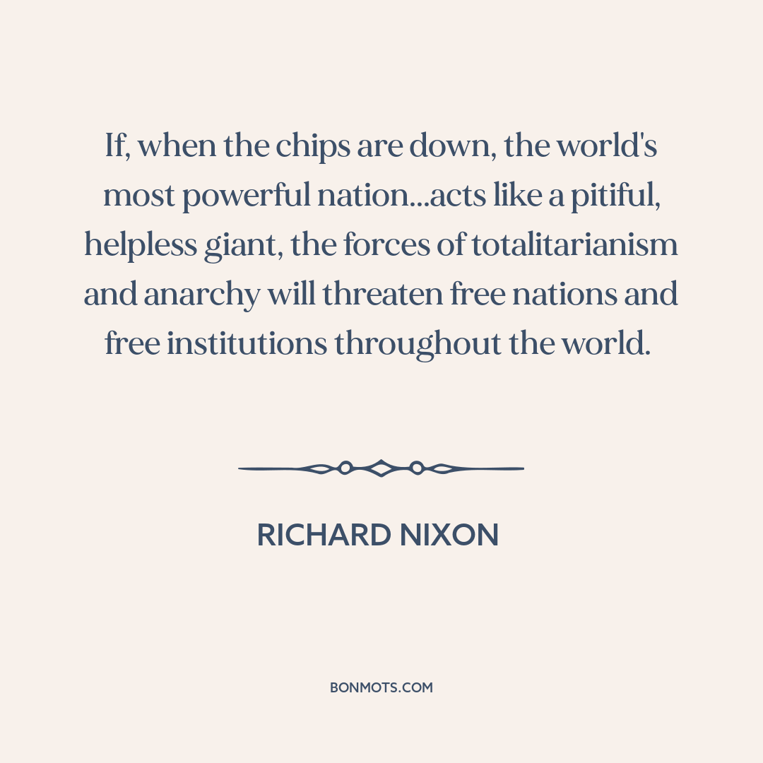 If, when the chips are down, the world's most powerful nation...acts like a pitiful, helpless giant, the forces of totalitarianism and anarchy will threaten free nations and free institutions throughout the world.