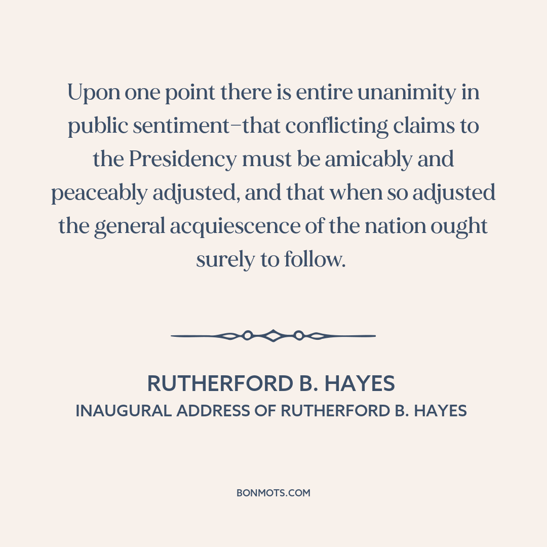 Upon one point there is entire unanimity in public sentiment—that conflicting claims to the Presidency must be amicably and peaceably adjusted, and that when so adjusted the general acquiescence of the nation ought surely to follow.