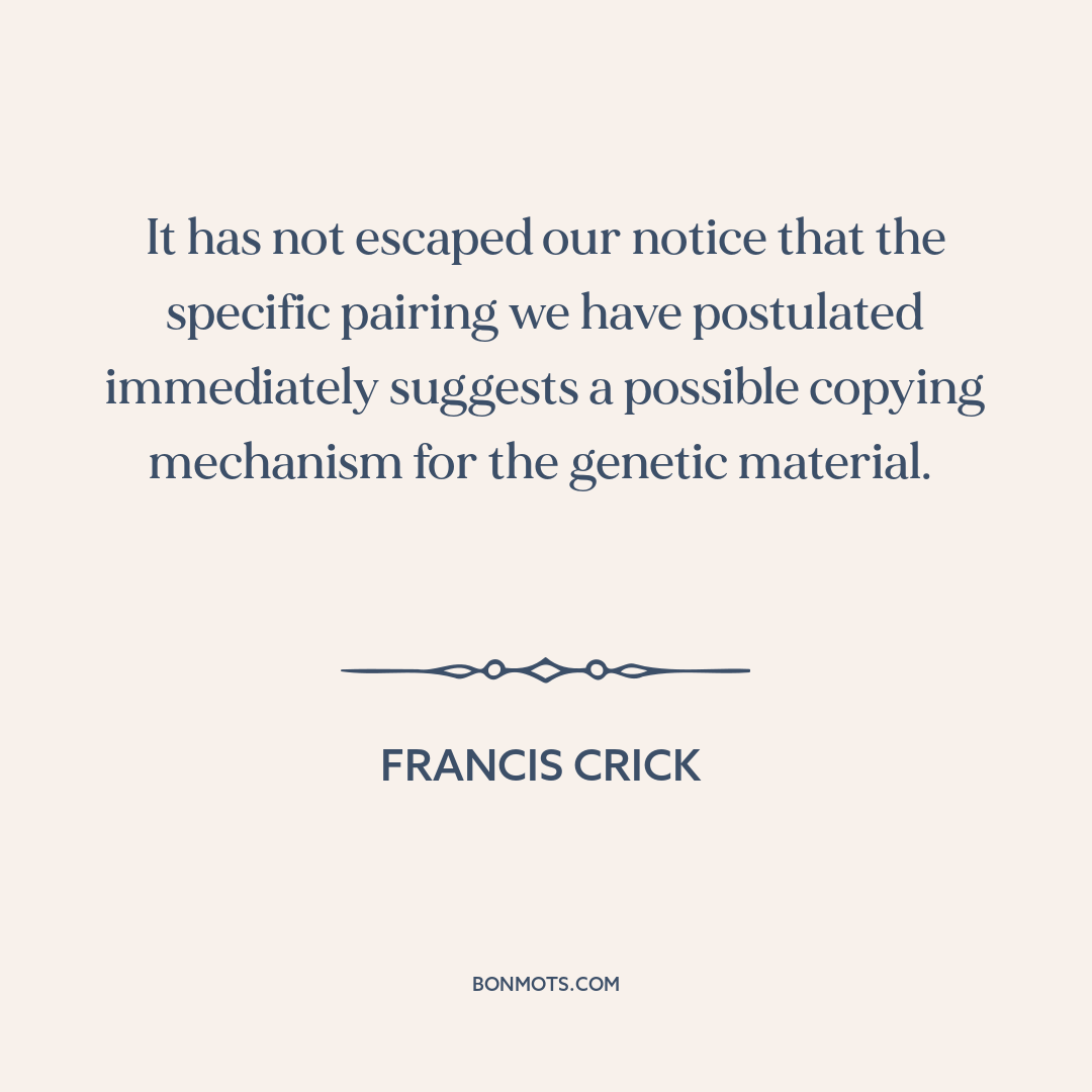 It has not escaped our notice that the specific pairing we have postulated immediately suggests a possible copying mechanism for the genetic material.