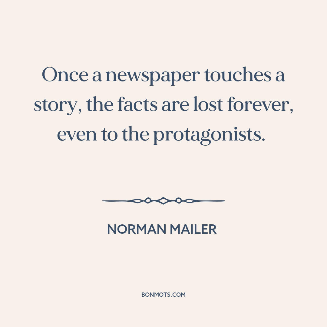 Once a newspaper touches a story, the facts are lost forever, even to the protagonists.