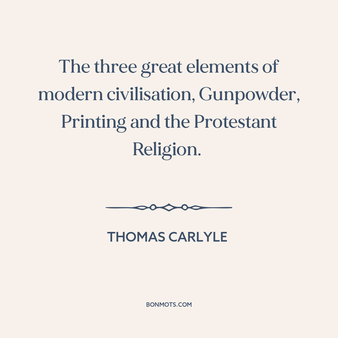The three great elements of modern civilisation, Gunpowder, Printing and the Protestant Religion.