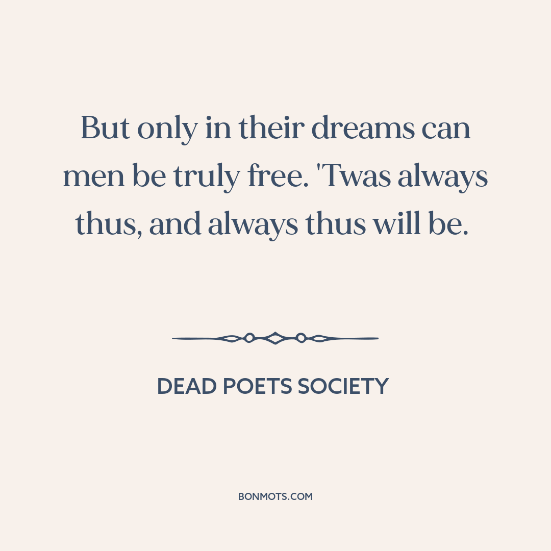 But only in their dreams can men be truly free. 'Twas always thus, and always thus will be.