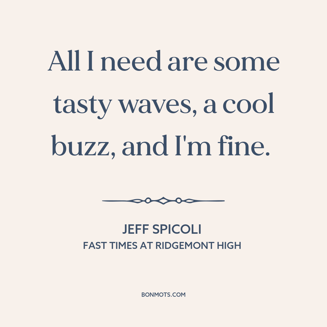 All I need are some tasty waves, a cool buzz, and I'm fine.