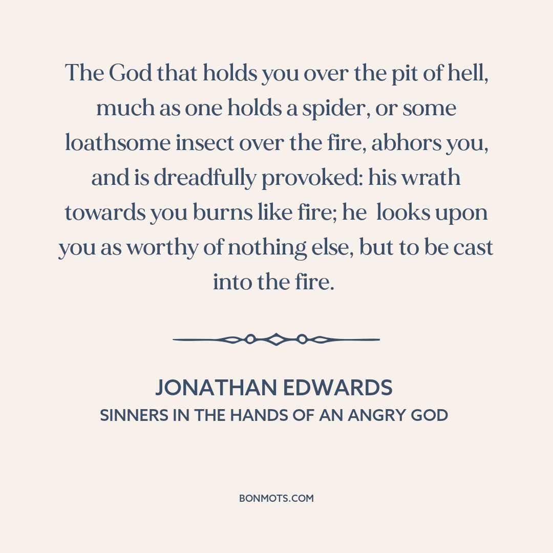 The God that holds you over the pit of hell, much as one holds a spider, or some loathsome insect over the fire, abhors you, and is dreadfully provoked: his wrath towards you burns like fire; he looks upon you as worthy of nothing else, but to be cast into the fire.