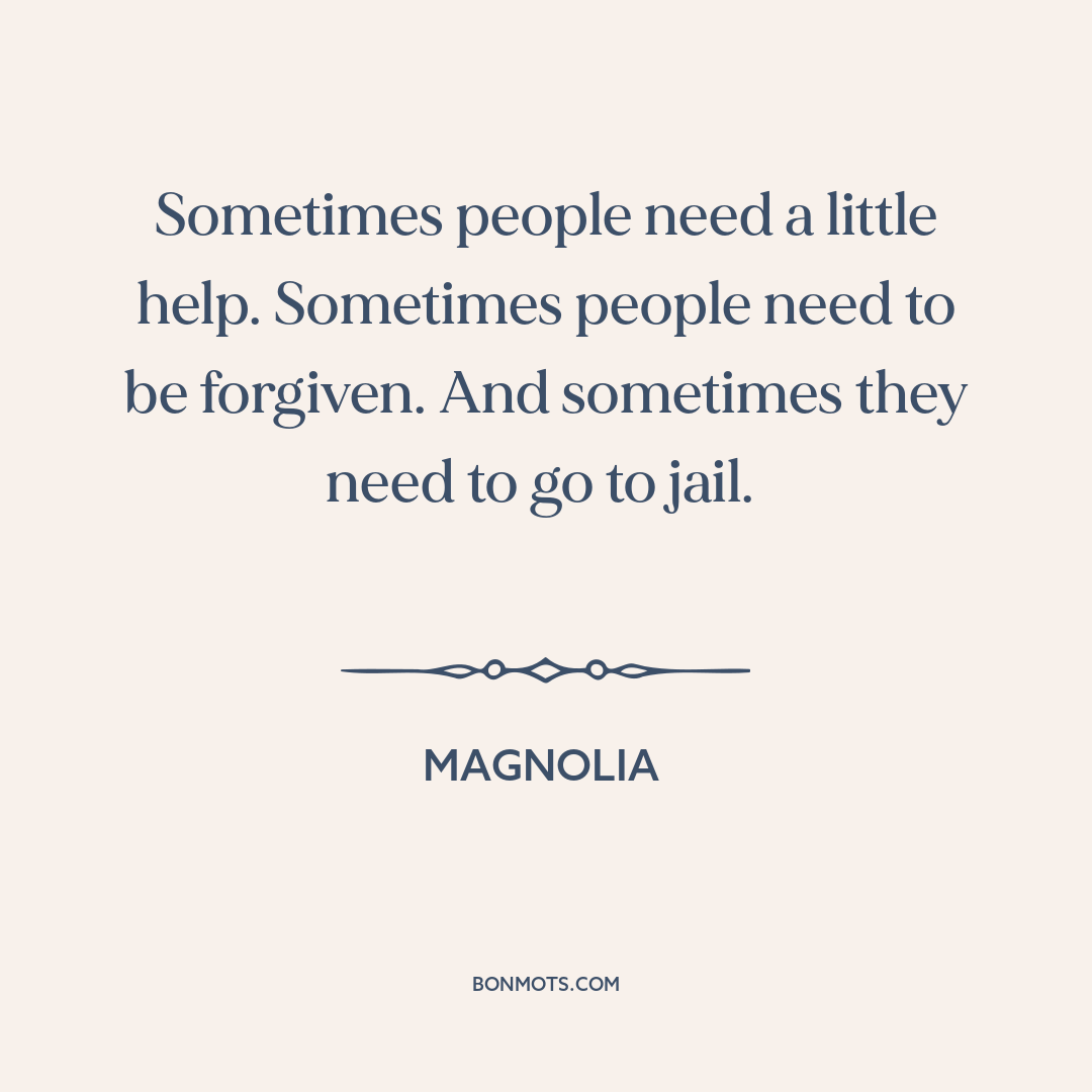Sometimes people need a little help. Sometimes people need to be forgiven. And sometimes they need to go to jail.