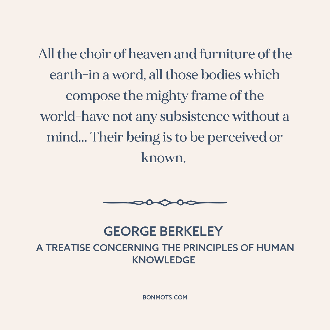 All the choir of heaven and furniture of the earth-in a word, all those bodies which compose the mighty frame of the world-have not any subsistence without a mind... Their being is to be perceived or known.
