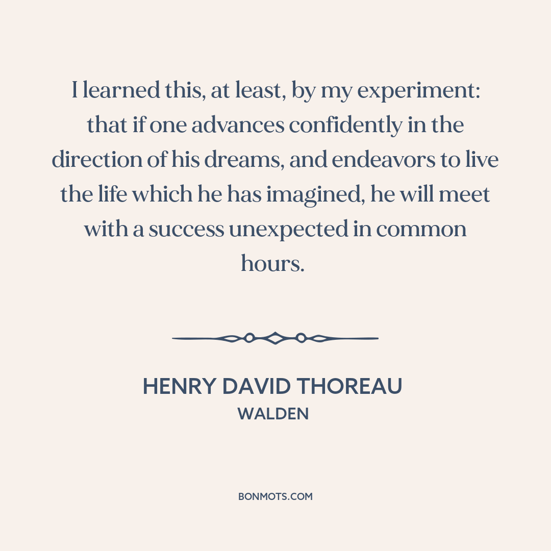 I learned this, at least, by my experiment: that if one advances confidently in the direction of his dreams, and endeavors to live the life which he has imagined, he will meet with a success unexpected in common hours.