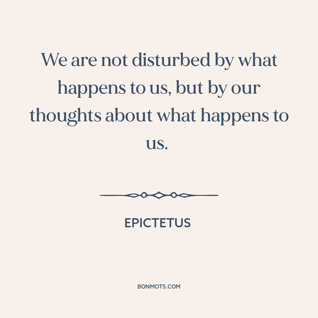We are not disturbed by what happens to us, but by our thoughts about what happens to us.