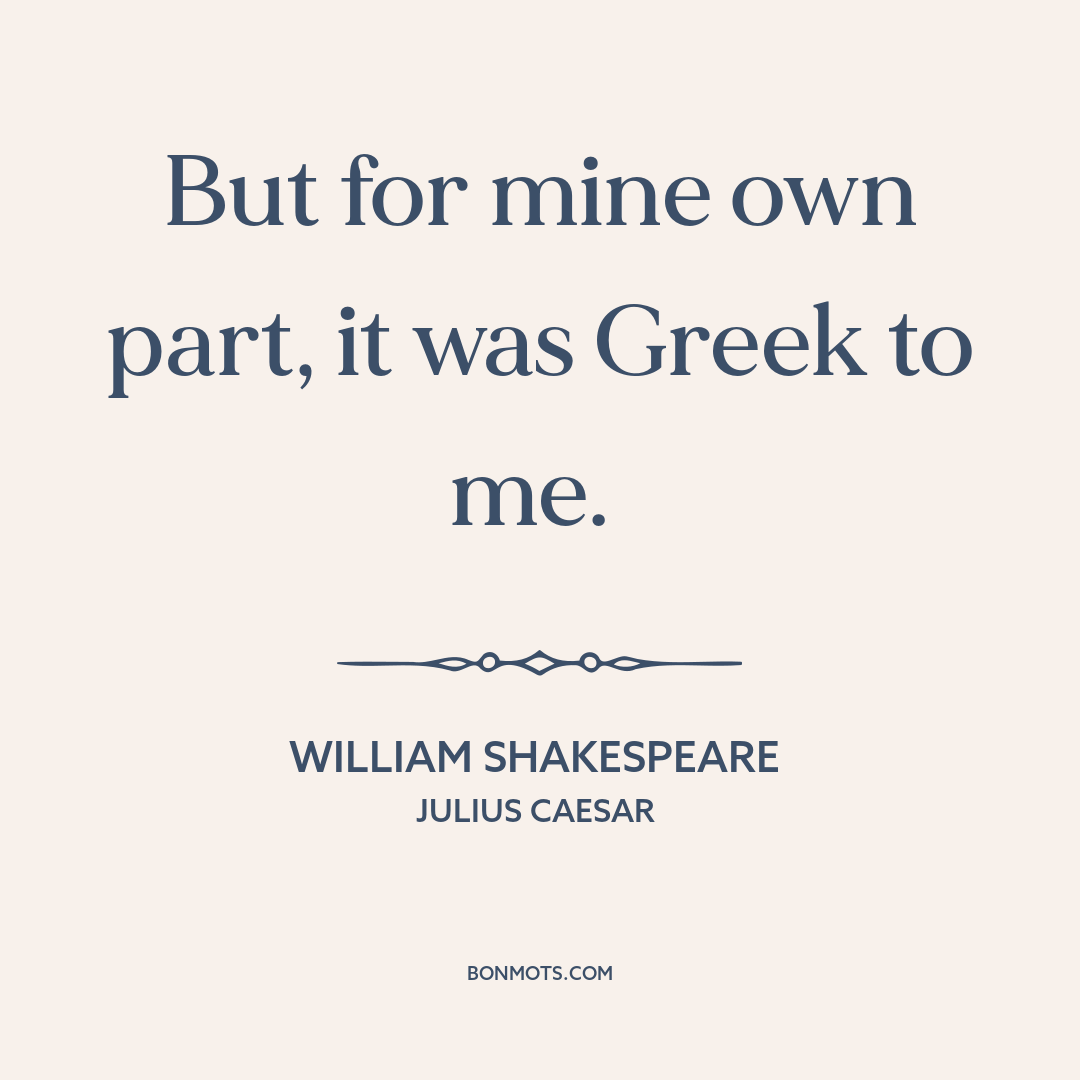 But for mine own part, it was Greek to me.