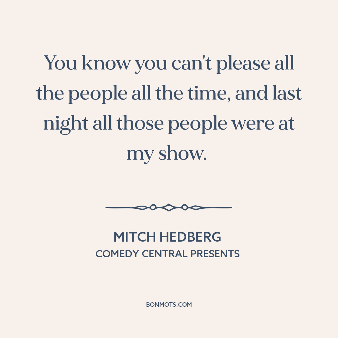 You know you can't please all the people all the time, and last night all those people were at my show.