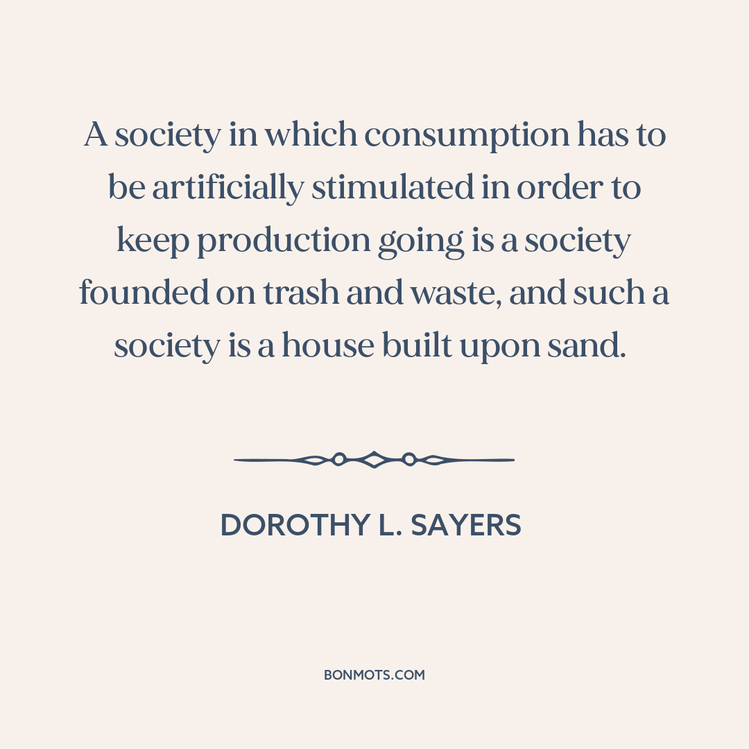 A society in which consumption has to be artificially stimulated in order to keep production going is a society founded on trash and waste, and such a society is a house built upon sand.