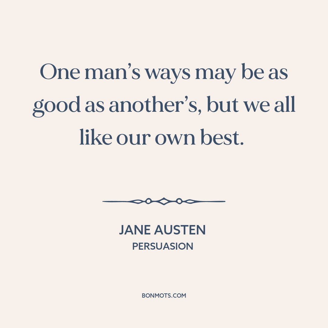 One man’s ways may be as good as another’s, but we all like our own best.