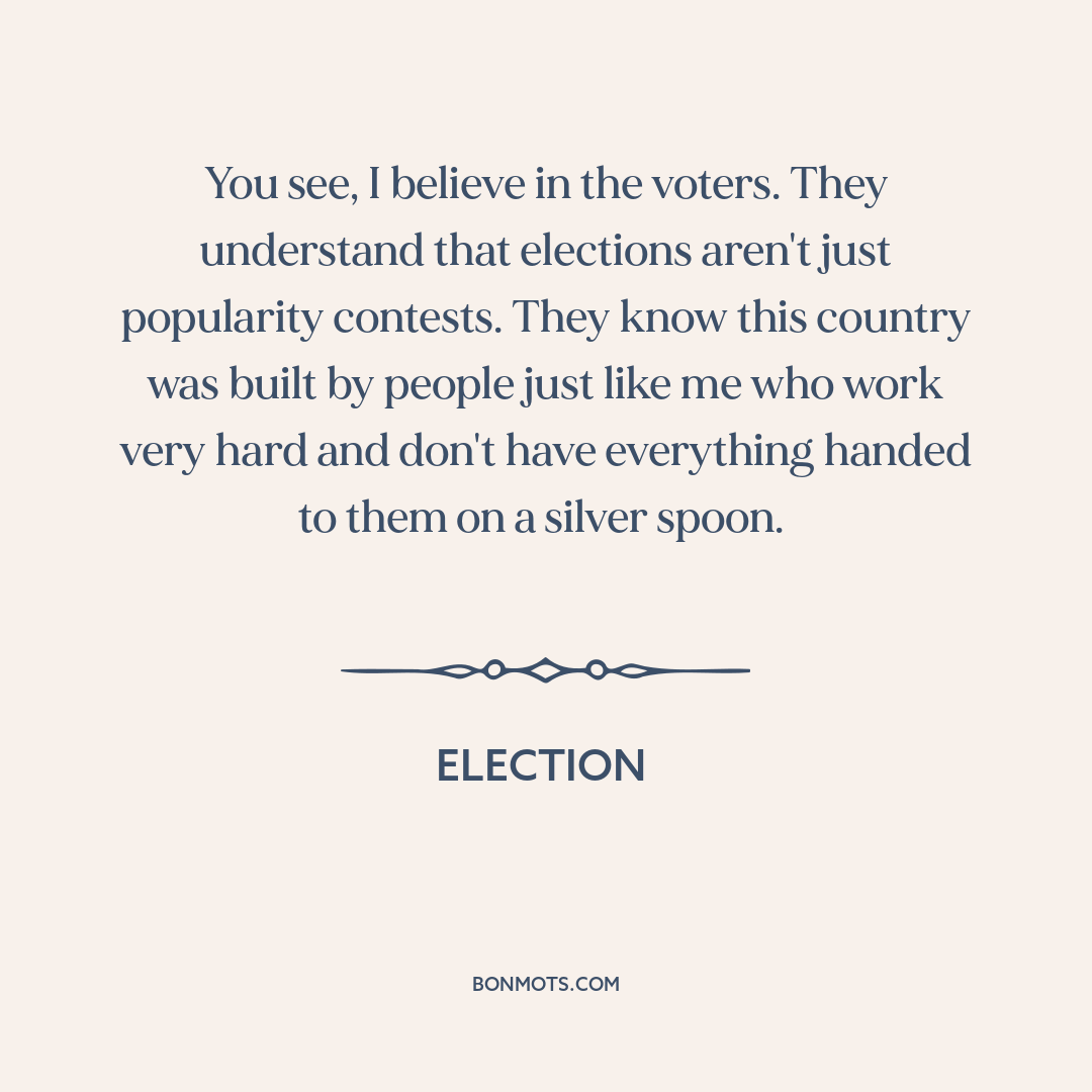 You see, I believe in the voters. They understand that elections aren't just popularity contests. They know this country was built by people just like me who work very hard and don't have everything handed to them on a silver spoon.