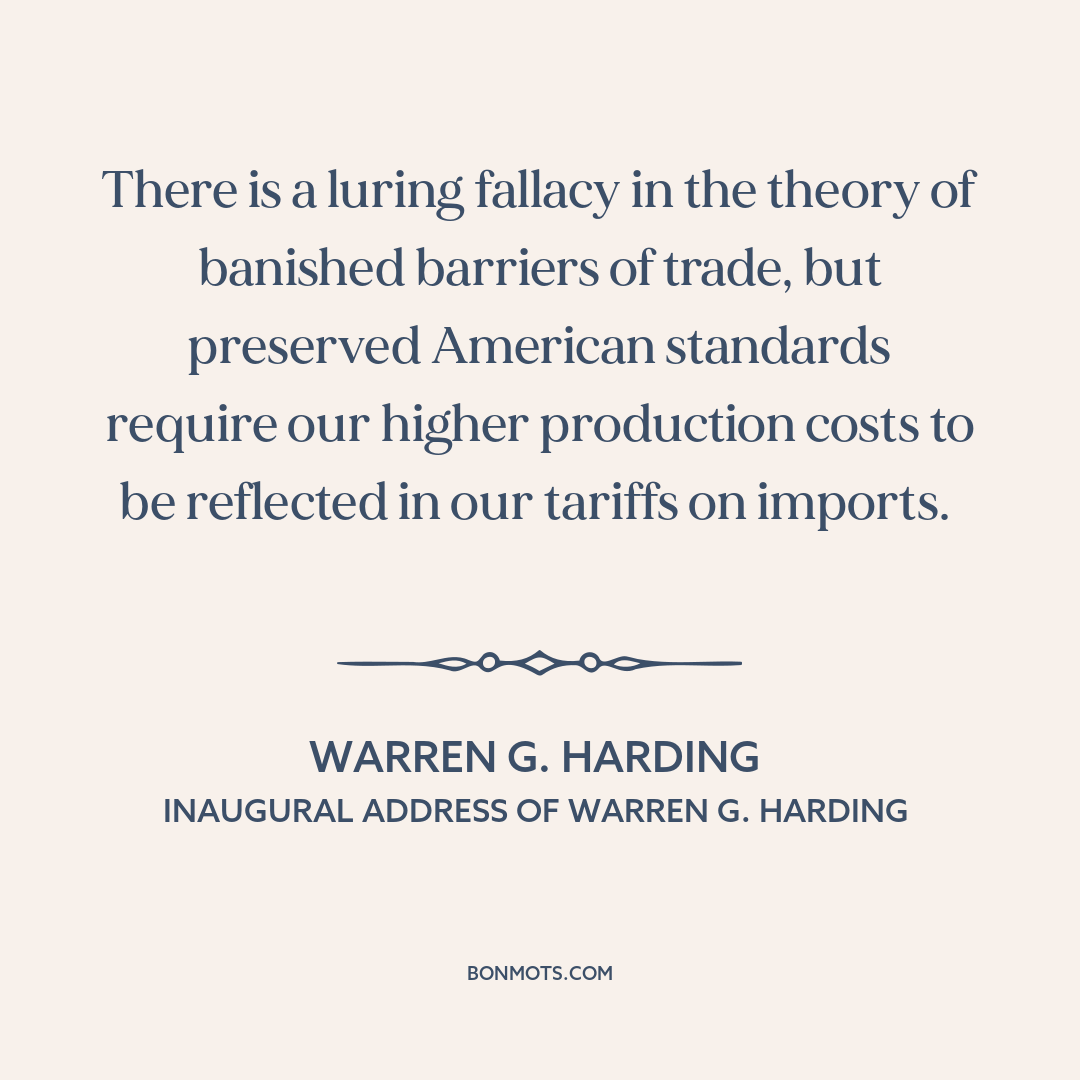 There is a luring fallacy in the theory of banished barriers of trade, but preserved American standards require our higher production costs to be reflected in our tariffs on imports.