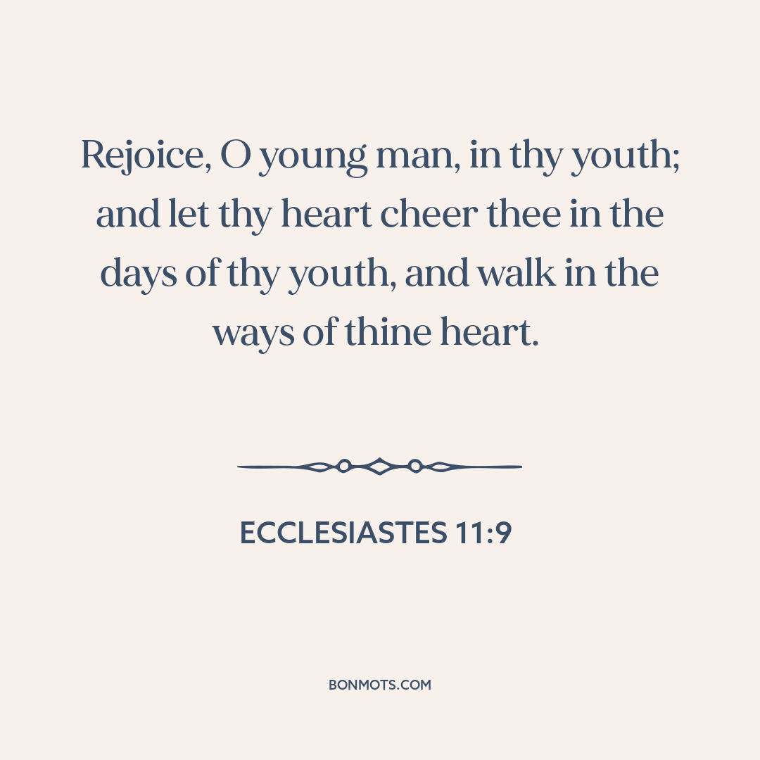 Rejoice, O young man, in thy youth; and let thy heart cheer thee in the days of thy youth, and walk in the ways of thine heart.