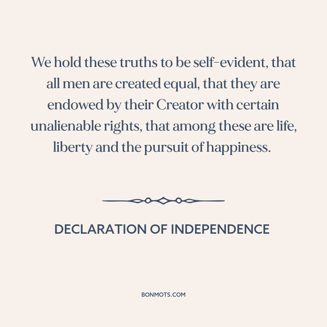 We hold these truths to be self-evident, that all men are created equal, that they are endowed by their Creator with certain unalienable rights, that among these are life, liberty and the pursuit of happiness.