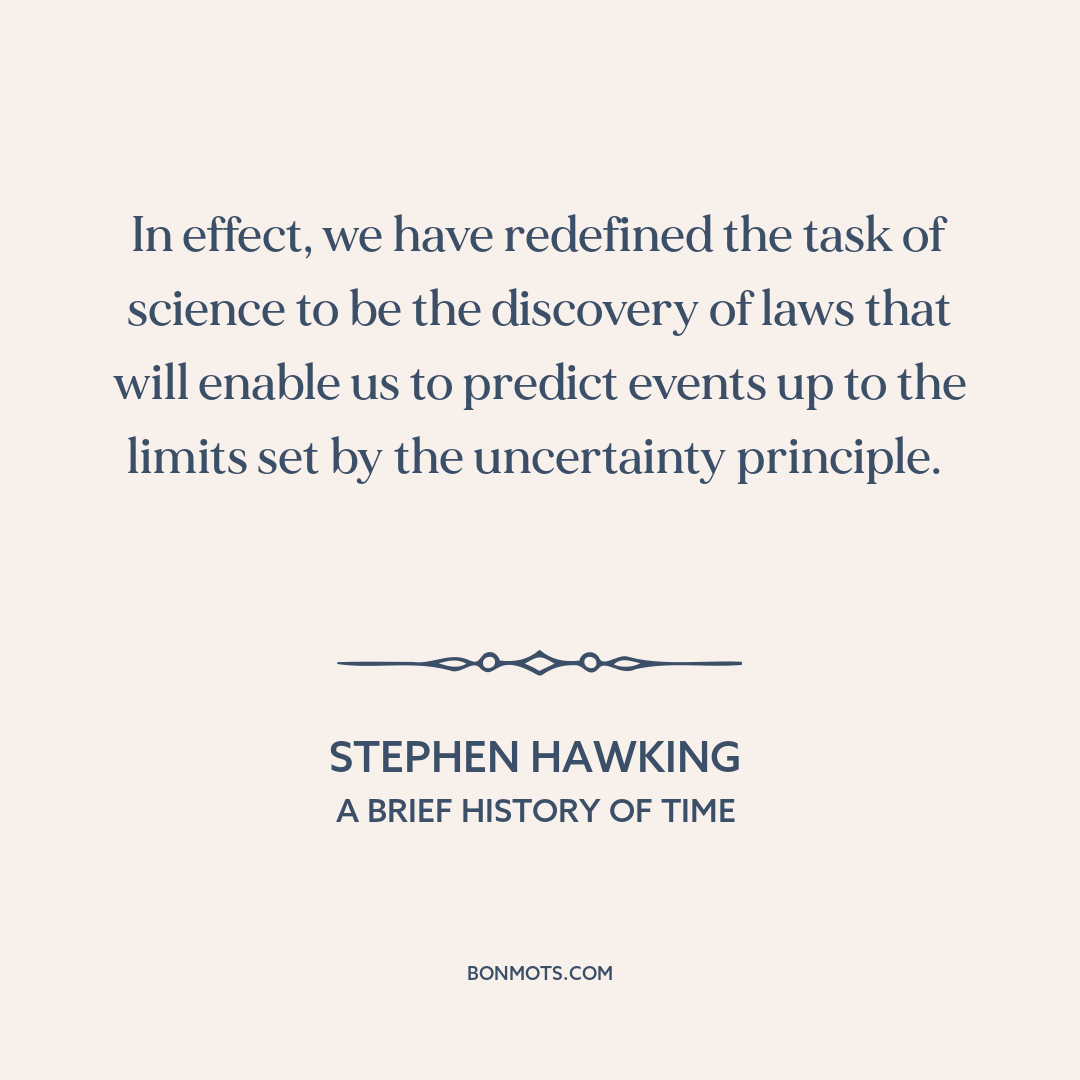 In effect, we have redefined the task of science to be the discovery of laws that will enable us to predict events up to the limits set by the uncertainty principle.