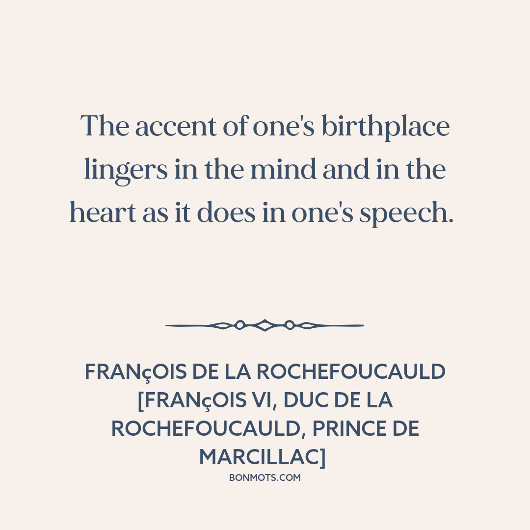 The accent of one's birthplace lingers in the mind and in the heart as it does in one's speech.
