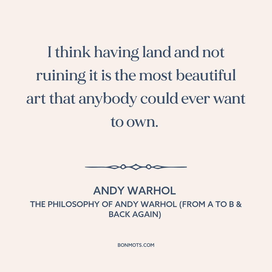 I think having land and not ruining it is the most beautiful art that anybody could ever want to own.