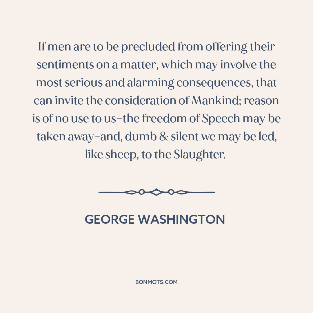 If men are to be precluded from offering their sentiments on a matter, which may involve the most serious and alarming consequences, that can invite the consideration of Mankind; reason is of no use to us—the freedom of Speech may be taken away—and, dumb & silent we may be led, like sheep, to the Slaughter.