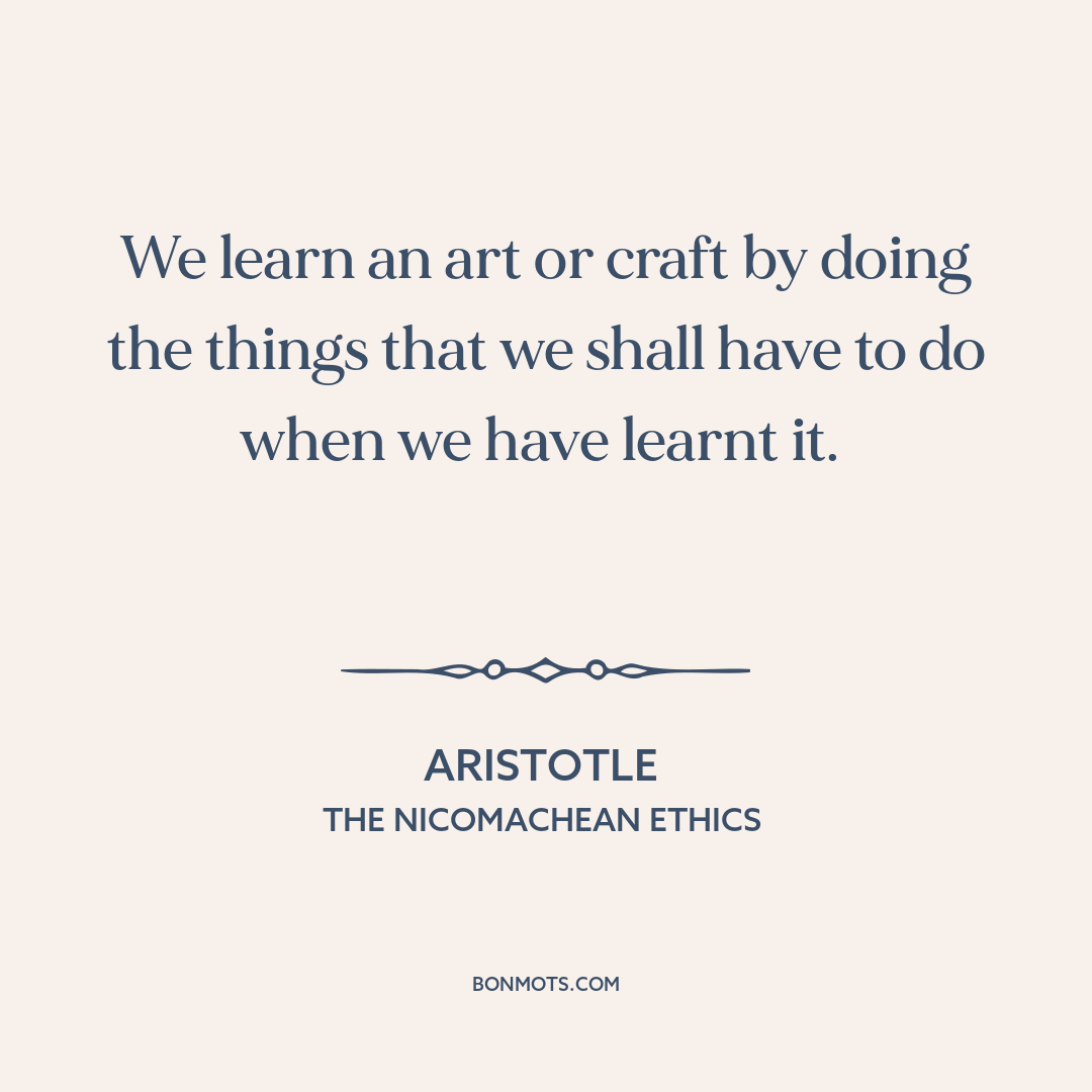 We learn an art or craft by doing the things that we shall have to do when we have learnt it.