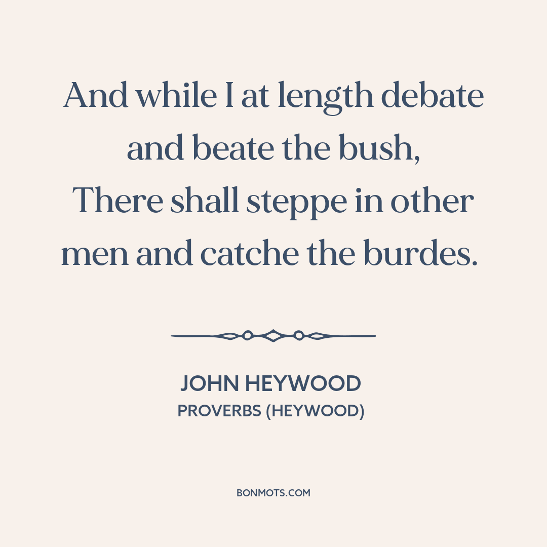 And while I at length debate and beate the bush,