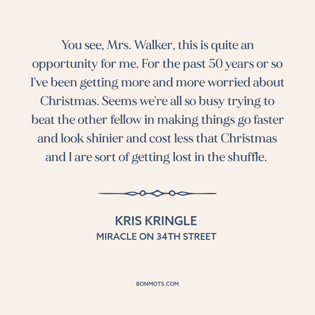 You see, Mrs. Walker, this is quite an opportunity for me. For the past 50 years or so I've been getting more and more worried about Christmas. Seems we're all so busy trying to beat the other fellow in making things go faster and look shinier and cost less that Christmas and I are sort of getting lost in the shuffle.