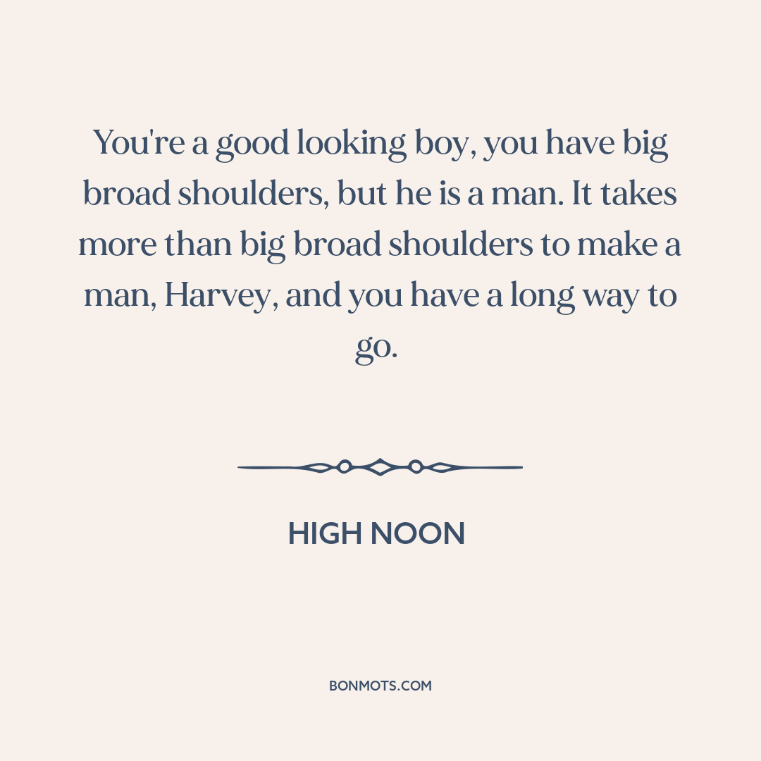 You're a good looking boy, you have big broad shoulders, but he is a man. It takes more than big broad shoulders to make a man, Harvey, and you have a long way to go.