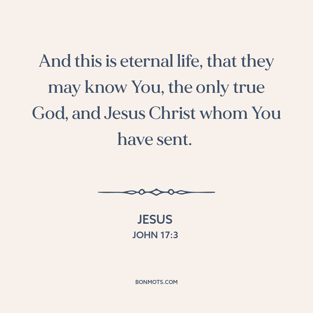 And this is eternal life, that they may know You, the only true God, and Jesus Christ whom You have sent.