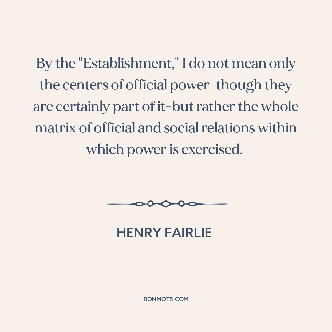 By the "Establishment," I do not mean only the centers of official power-though they are certainly part of it-but rather the whole matrix of official and social relations within which power is exercised.