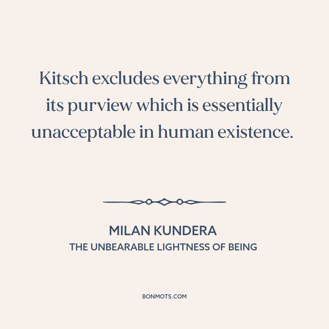 Kitsch excludes everything from its purview which is essentially unacceptable in human existence.