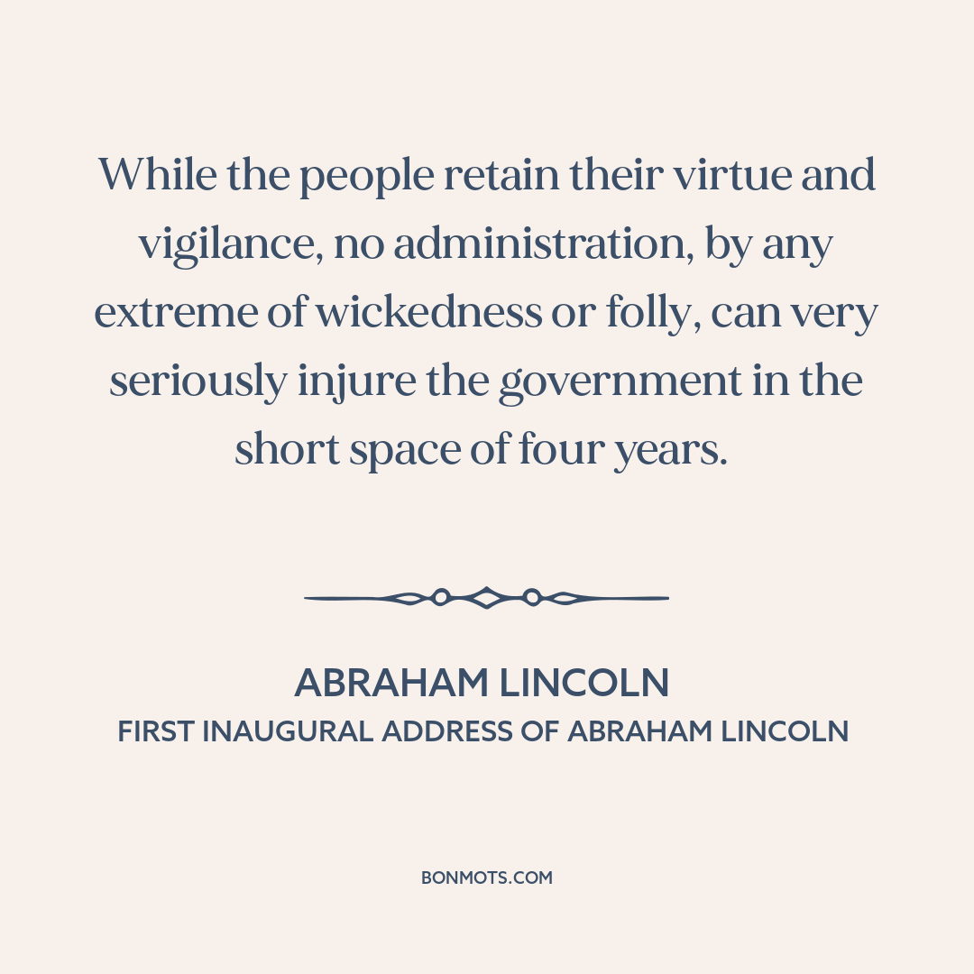 While the people retain their virtue and vigilance, no administration, by any extreme of wickedness or folly, can very seriously injure the government in the short space of four years.