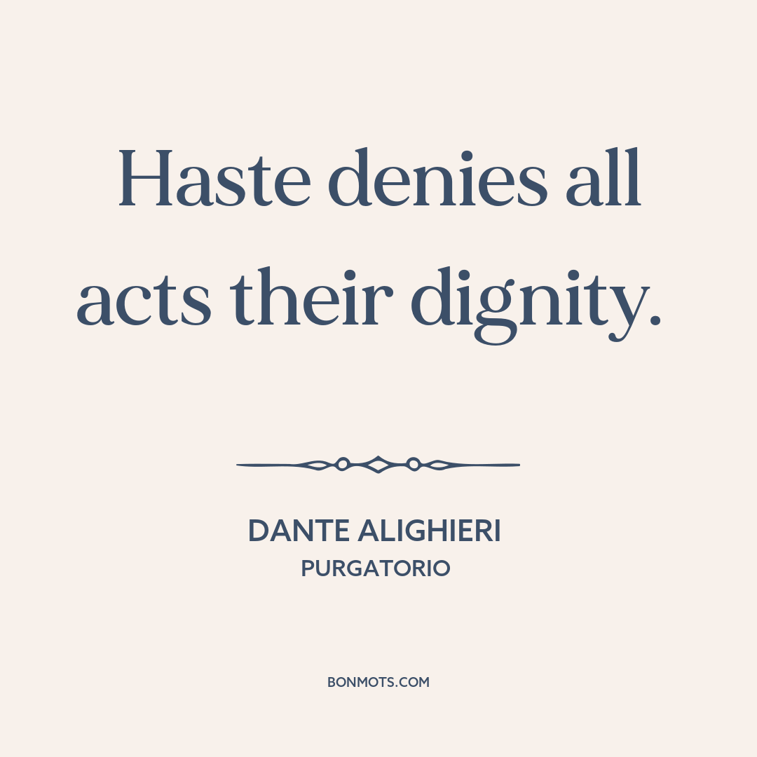 Haste denies all acts their dignity.