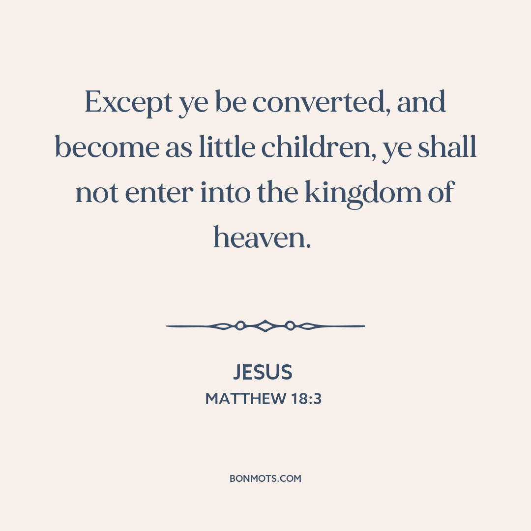Except ye be converted, and become as little children, ye shall not enter into the kingdom of heaven.