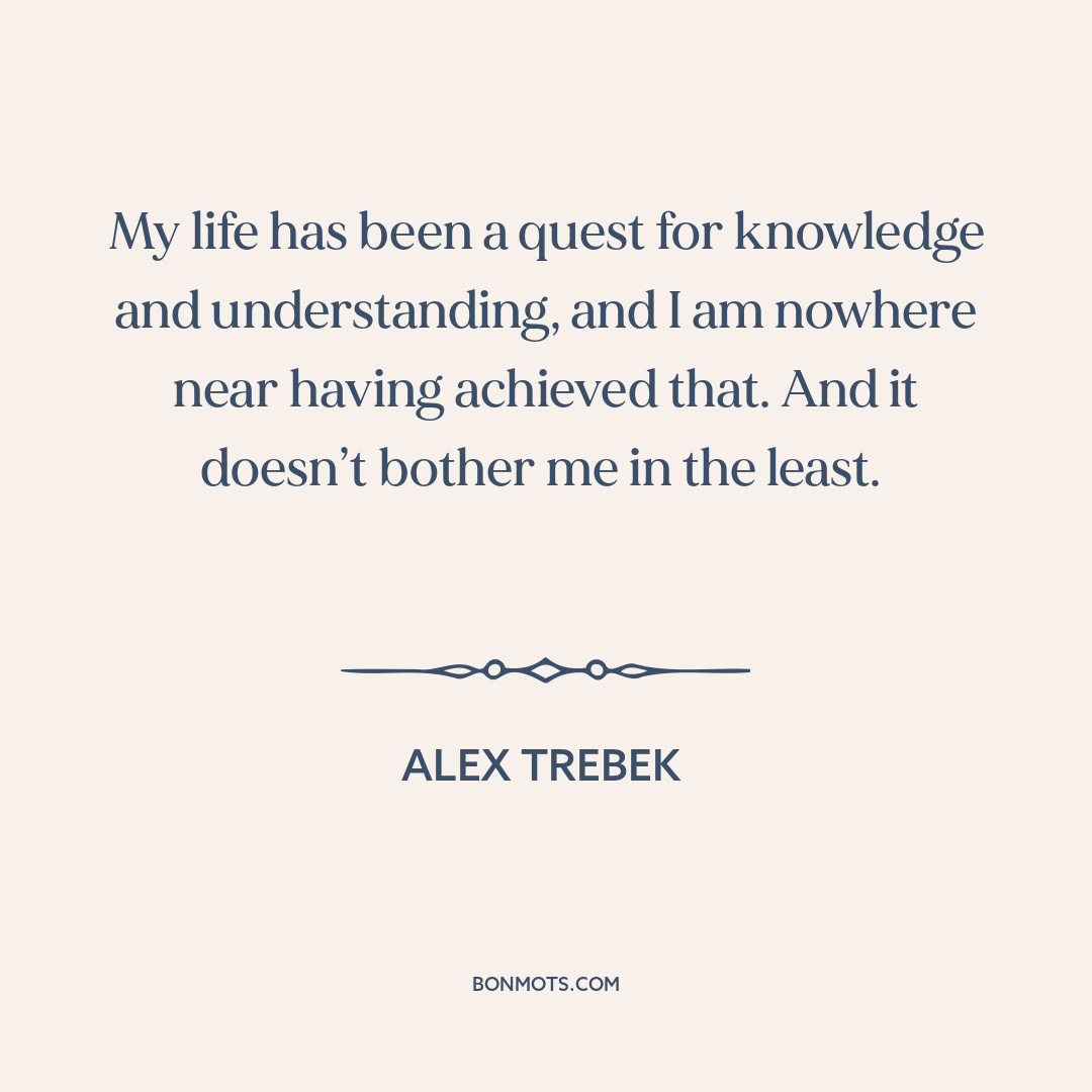 My life has been a quest for knowledge and understanding, and I am nowhere near having achieved that. And it doesn’t bother me in the least.