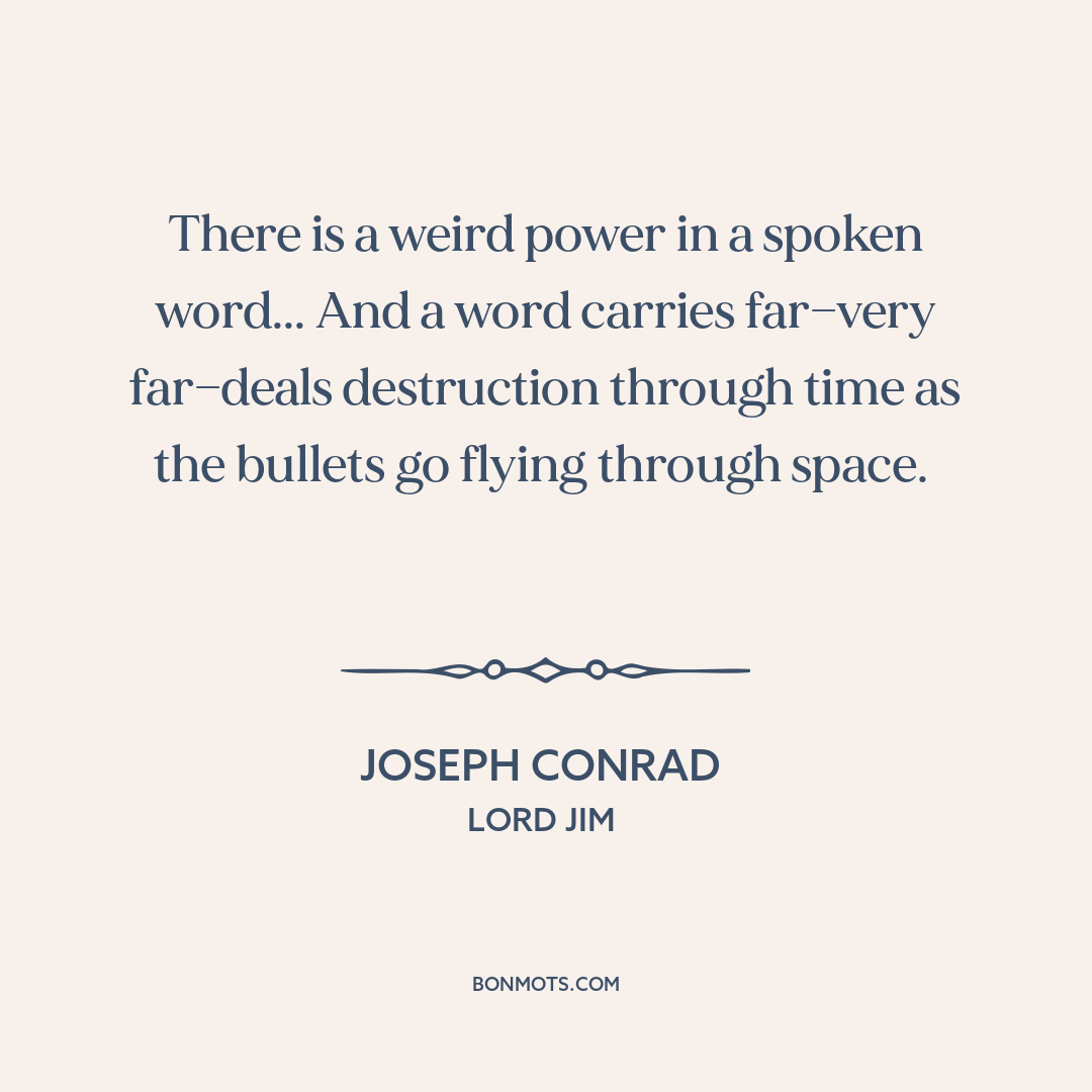 There is a weird power in a spoken word... And a word carries far—very far—deals destruction through time as the bullets go flying through space.