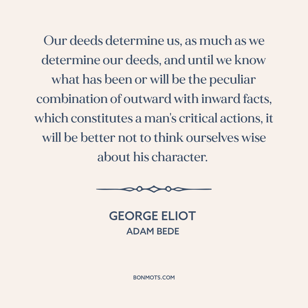 Our deeds determine us, as much as we determine our deeds, and until we know what has been or will be the peculiar combination of outward with inward facts, which constitutes a man's critical actions, it will be better not to think ourselves wise about his character.