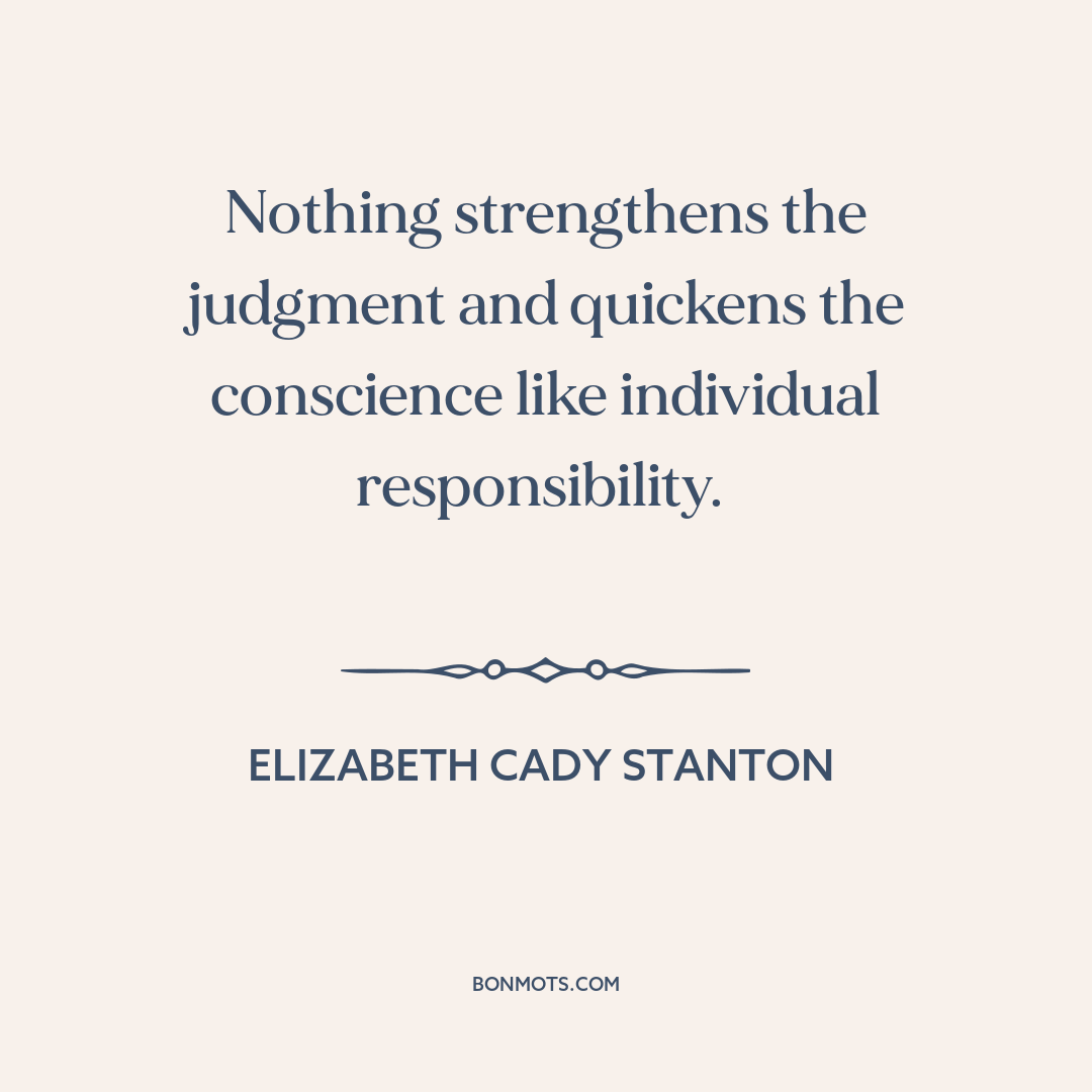 Nothing strengthens the judgment and quickens the conscience like individual responsibility.