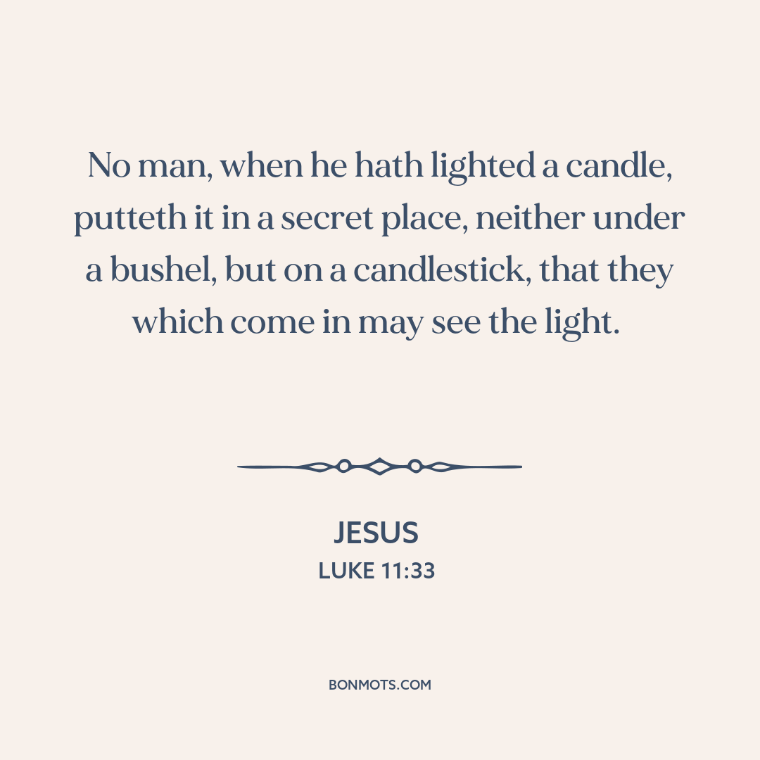 No man, when he hath lighted a candle, putteth it in a secret place, neither under a bushel, but on a candlestick, that they which come in may see the light.