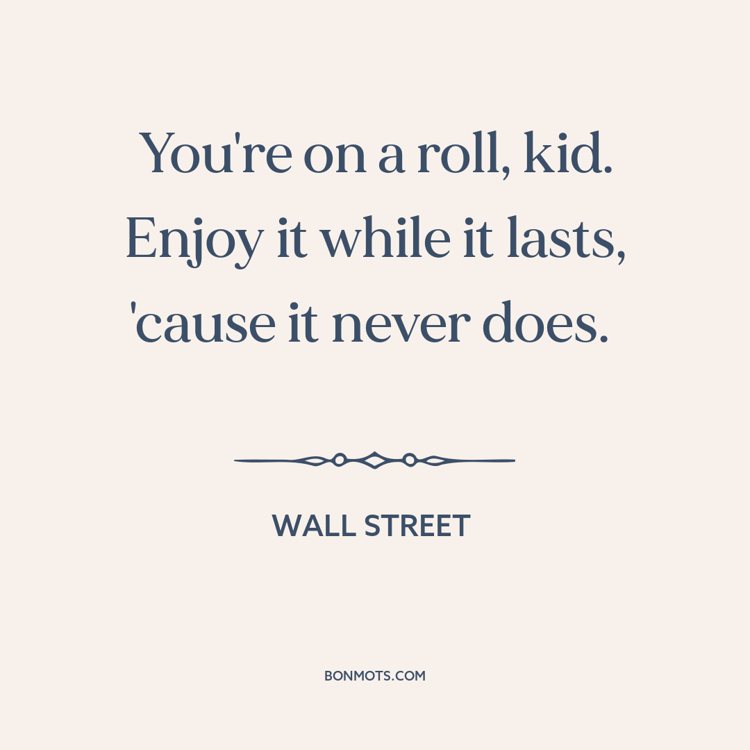 You're on a roll, kid. Enjoy it while it lasts, 'cause it never does.