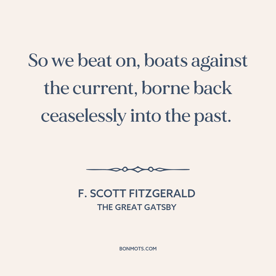 So we beat on, boats against the current, borne back ceaselessly into the past.