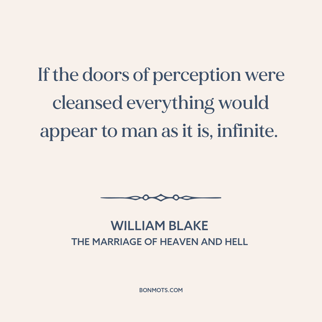If the doors of perception were cleansed everything would appear to man as it is, infinite.