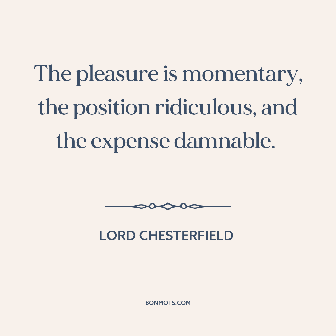 The pleasure is momentary, the position ridiculous, and the expense damnable.
