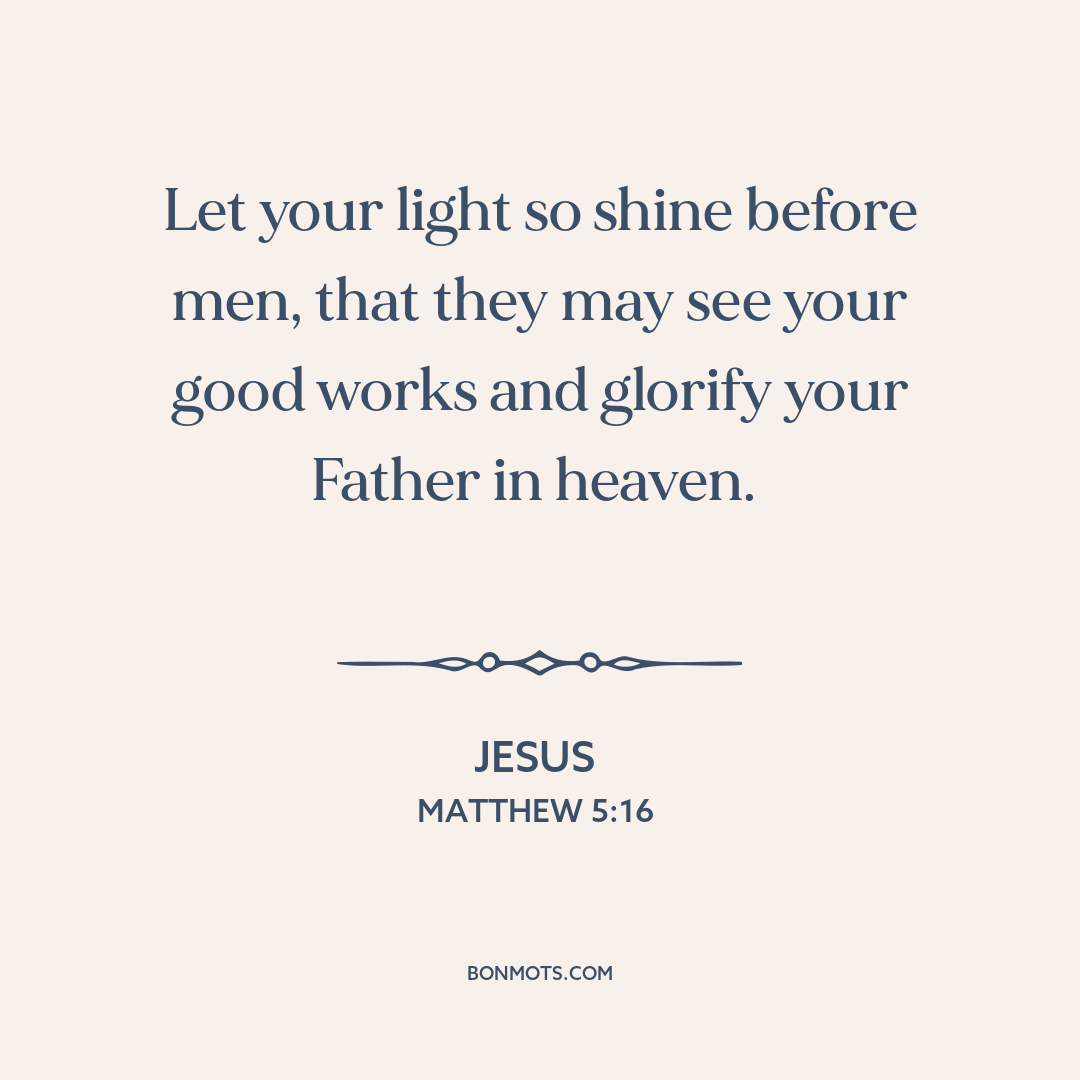 οὕτως λαμψάτω τὸ φῶς ὑμῶν ἔμπροσθεν τῶν ἀνθρώπων, ὅπως ἴδωσιν ὑμῶν τὰ καλὰ ἔργα καὶ δοξάσωσιν τὸν πατέρα ὑμῶν τὸν ἐν τοῖς οὐρανοῖς.