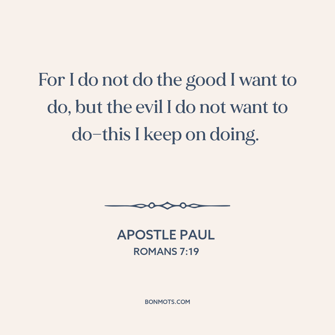 For I do not do the good I want to do, but the evil I do not want to do—this I keep on doing.