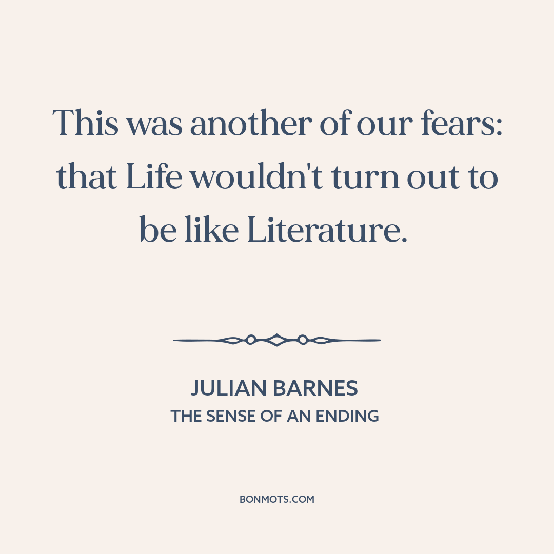 This was another of our fears: that Life wouldn't turn out to be like Literature.