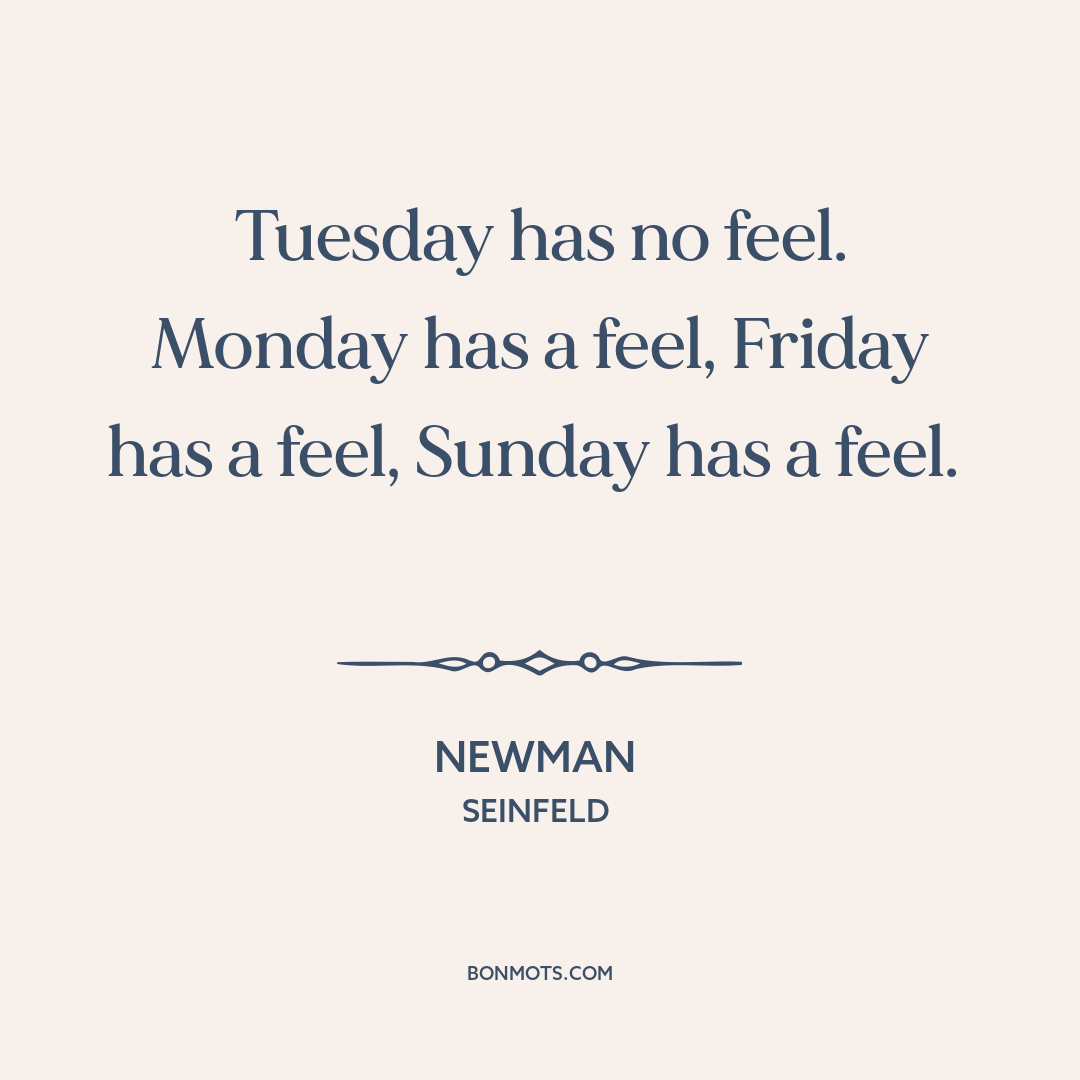 Tuesday has no feel. Monday has a feel, Friday has a feel, Sunday has a feel.